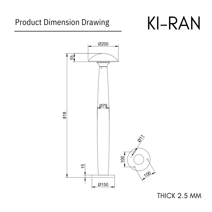 โคมไฟสนาม KIRAN-BL015-12W-818 วัสดุอลูมิเนียมหนา 2.5 มิล แสงLED 12W สูง 81.8ซม. แสงวอร์ม 3000K WarmWhite วัสดุทนทาน อายุการใช้งานยาวนาน กันน้ำกันฝุ่น IP65