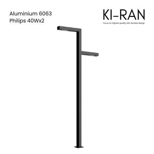 โคมไฟเสาสนามสูง 4 เมตร LED Chip Philips 40Wx2 สามารถใช้ภายนอกได้เป็นอย่างดี กันน้ำกับฝุ่น ระดับ IP65 วัสดุทำจากอลูมิเนียม 6063 หมดกังวลเรื่องสนิม ผิวสัมผัสดูดีระดับพรีเมี่ยม